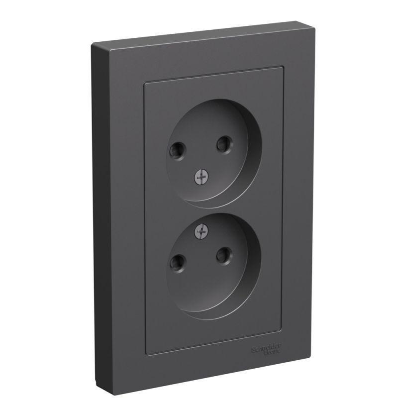 Розетка двойная в сборе Systeme Electric (ранее Schneider Electric) серии AtlasDesign в цвете базальт без заземления со шторками подходит для сетей 250 В, на ток 16 А. Лицевые детали из качественного ABS-пластика, устойчивого к царапинам и УФ-излучению. Двойная розетка позволяет подключить два устройства в одном месте. Изделие поставляется в комплекте с рамкой того же цвета.
