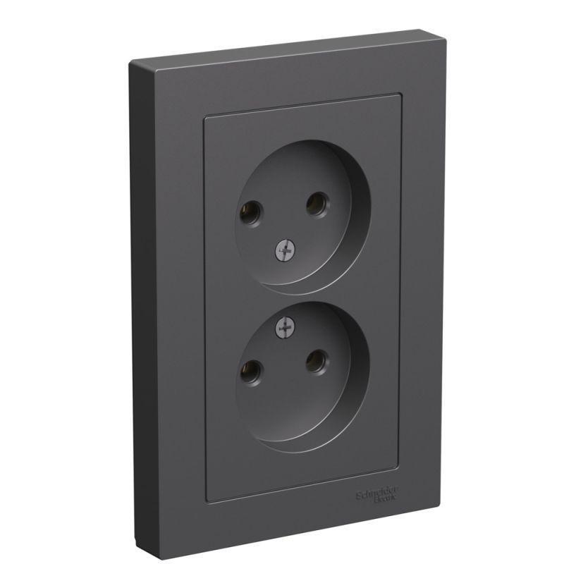 Розетка двойная в сборе Systeme Electric (ранее Schneider Electric) серии AtlasDesign в цвете базальт без заземления и без шторок подходит для сетей 250 В, на ток 16 А. Лицевые детали из качественного ABS-пластика, устойчивого к царапинам и УФ-излучению. Двойная розетка позволяет подключить два устройства в одном месте. Изделие поставляется в комплекте с рамкой того же цвета.