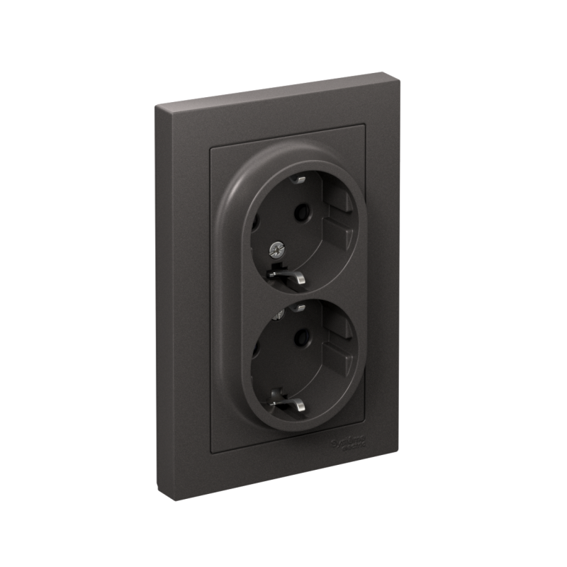 Розетка двойная в сборе Systeme Electric (ранее Schneider Electric) серии AtlasDesign в цвете базальт с заземлением, без шторок подходит для сетей 250 В, на ток 16 А. Заземляющий контакт обеспечивает дополнительную защиту от удара электрическим током. Лицевые детали из качественного ABS-пластика, устойчивого к царапинам и УФ-излучению. Двойная розетка позволяет подключить два устройства в одном месте. Изделие поставляется в комплекте с рамкой того же цвета.