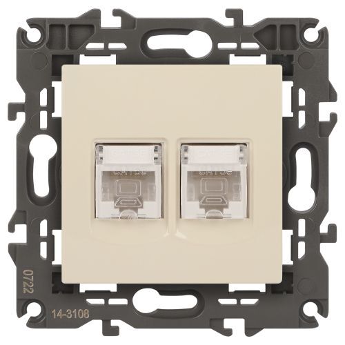 Розетка информационная двойная 2XRJ45 серии Эра Elegance скрытой установки цвет слоновая кость 14-3108-02. Выполенена из поликарбоната.