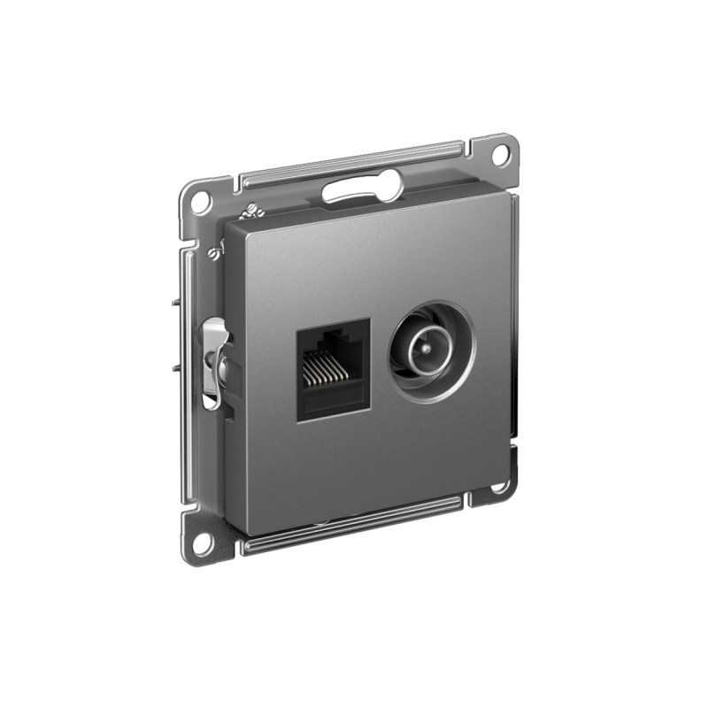 Розетка компьютерная + телевизионная 2-м AtlasDesign RJ45 кат.5E + TV механизм сталь SE ATN000989