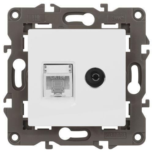 Розетка компьютерная + телевизионная 2-м Elegance 14-3110-01 RJ45 + TV IP20 механизм бел. Эра Б0034314