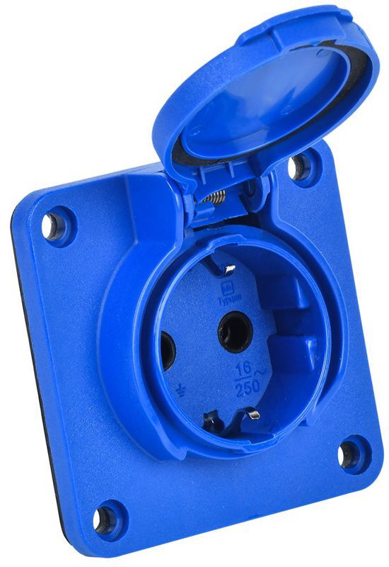 Розетка панельная MAGNUM 2P+PE 16А IP54 РП17-3 увел. фланец с защ. крышкой с заземл. син. IEK PSN71-016-3-4-54-K07