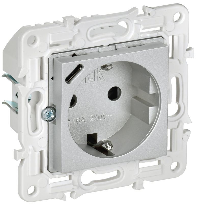 Розетка SKANDY 18Вт 16А с заземл. защ. шторки с USB C SK-R17S серебр. IEK SK-R14-16-U14-018-K23