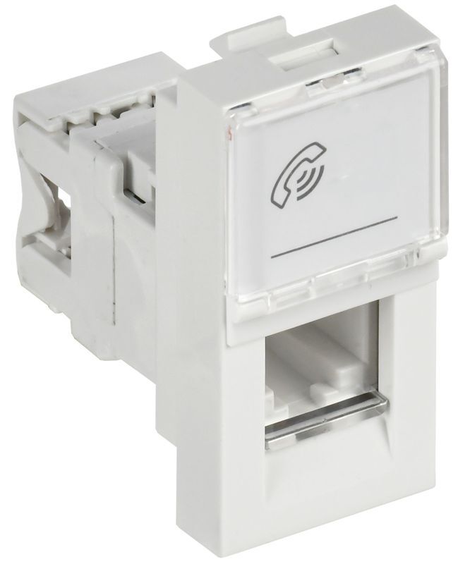 Модульные электроустановочные изделия 45х45 серии ПРАЙМЕР предназначены для организации рабочего места с применением кабель-каналов, напольных лючков или розеточных блоков, а также для открытого монтажа в коробки типа КМКУ. Розетка телефонная RJ-11 предназначена для подключения устройств абонентской телефонной техники, устанавливаемых в жилых, общественных и промышленных помещениях, к линиям телефонной сети. Розетка на 1 вход. Комплектуются одним модулем Keystone Jack категории 3 IDC. Размеры, ВхШхГ,мм: 45х22,5х41,7. Цвет - белый. Размеры модульных ЭУИ ПРАЙМЕР: 1 модуль = 45х22,5 мм 2 модуля (1 пост) = 45х45 мм