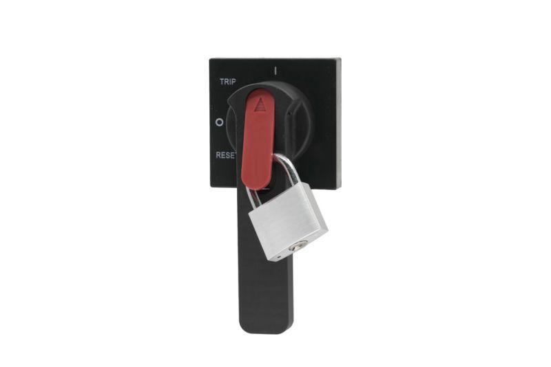 Ручка поворотная на дверь шкафа РП-306; состоит из ручки, удлинительной оси и поворотной рукоятки; предназначена для ручного дистанционного переключения (включения и отключения) автоматического выключателя серии ВА-306 без открытия двери шкафа.