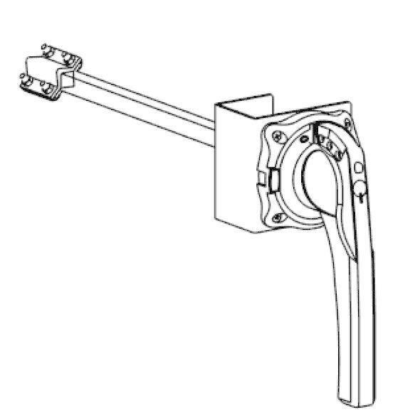 Выносная поворотная рукоятка выключателей-разъединителей серии SystemePact SP SD на ток 630 А; установка – боковая слева на стенку щита; цвет – красно-желтая. Поворотная рукоятки обеспечивает управление выключателем -разъединителем при замыкании и размыкании электрических цепей в распределительных щитах.