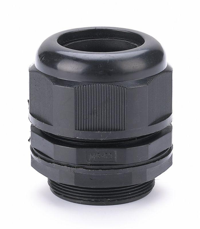 Кабельный ввод серии КВ-102 Dekraft; типа MG 50 диаметр кабеля – от 30 до 42 мм; цвет – серый; материал – пластик; степень защиты – IP68; количество в упаковке – 6 шт. Кабельный ввод состоит из фиксирующей гайки, корпуса, уплотнения из нейлона, а также из уплотнителя и прокладки из неопрена. Кабельные вводы имеют химическую стойкость к соленой воде, слабым кислотам, маслам, нефтепродуктам и основным растворителям. Конструкция кабельных вводов позволяет пропускать кабель без его демонтажа.