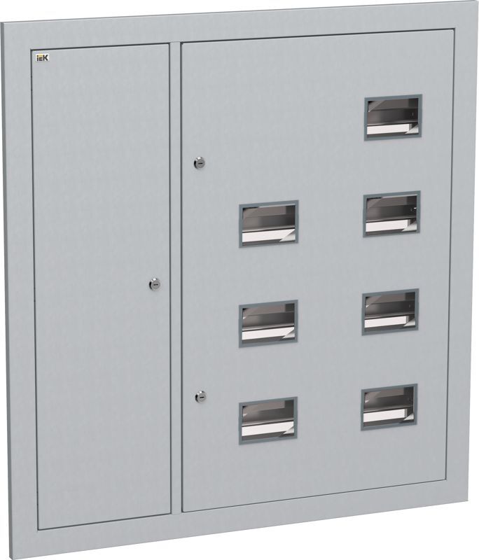 Используется для сборки этажного распределительного щита на 7 квартир, предназначенного для приема и распределения электроэнергии в жилых и общественных зданиях, а также для защиты отходящих линий при перегрузках и коротких замыканиях. Сварной металлический корпус состоит из двух отсеков: вводно-учетный и распределительный объединены в один, второй – отсек слаботочного оборудования (расположен слева). В вводно-учетном, распределительном отсеках размещены DIN-рейки для крепления счетчиков (по количеству квартир), аппаратов групповых линий и рейка для установки шин N и РЕ. Отсек укомплектован оперативной панелью. Отсек слаботочного оборудования снабжен перфорированными профилями для прокладки теле- и радиосетей, телефонных линий, сетей охранной сигнализации, домофонов и т.п. Для обеспечения пожарной безопасности между слаботочным и силовым отсеками расположена разделительная перегородка.