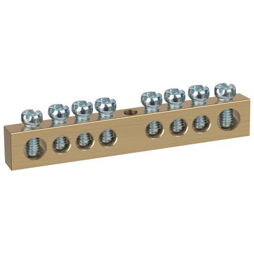Шины латунные PEN "земля-ноль" применяются для электрического и механического соединения нулевых, защитных и фазных проводников в электрических щитах и распределительных устройствах. Изделия выполняются из латуни соответствующего сечения с отверстиями обладающими винтовыми зажимами для подключения проводников. Применение «нулевых» шин позволяет: - свести в одну общую группу все нулевые или заземляющие проводники, входящие и отходящие, - сократить количество проводников в щитке, что упрощает его обслуживание, - сэкономить пространство и без особых усилий размещать новые элементы, - обеспечить стабильное и долговечное соединение. Особенности конструкции изделия: - Материал: латунь Л56 - Сечение: 8х12 мм - Номинальный ток In: 125 А - Диаметр отверстия для присоединения входящих проводников: o 7,5 мм - Диаметр отверстия для присоединения отходящих проводников: o 5 мм - Прижимные винты изготовлены из оцинкованной стали и обладают скруглённой контактной частью, что исключает перекусывание и повреждение подключаемых проводников