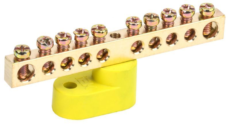 Шина PE "земля" ШНИ-6х9-10-У1-Ж на одном угловом изоляторе IEK YNN10-69-10C1-K05