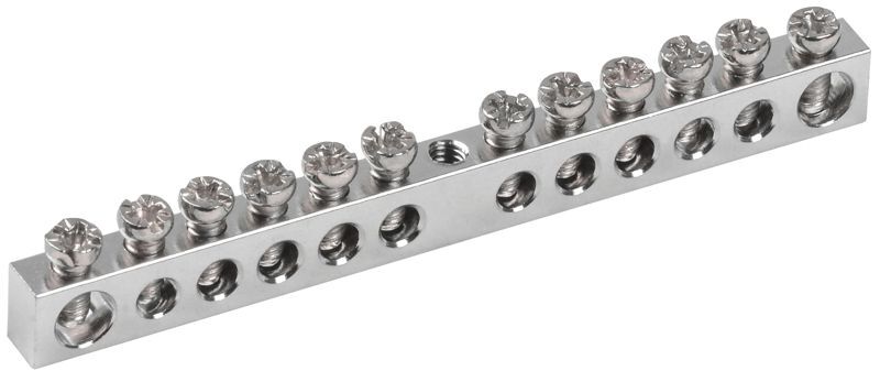 Применяются в щитовом оборудовании для подсоединения нулевых рабочих (N) и нулевых защитных проводов (РЕ). Крепление шины предусмотрено по центру (типы 8/1; 14/1) и по краям (типы 8/2 и 14/2) через изолятор нулевой шины на 35 мм монтажную DIN-рейку и через угловые изоляторы нулевой шины, а также непосредственно на панель щита. При подключении к шинам медных многожильных проводов рекомендуется оконцевание их наконечниками-гильзами. Выполнены из латуни. Шины с никелевым покрытием обладают более высокой коррозионной стойкостью материала и привлекательным внешним видом, что обеспечивает возможность их применения в средах с повышенной агрессивностью.