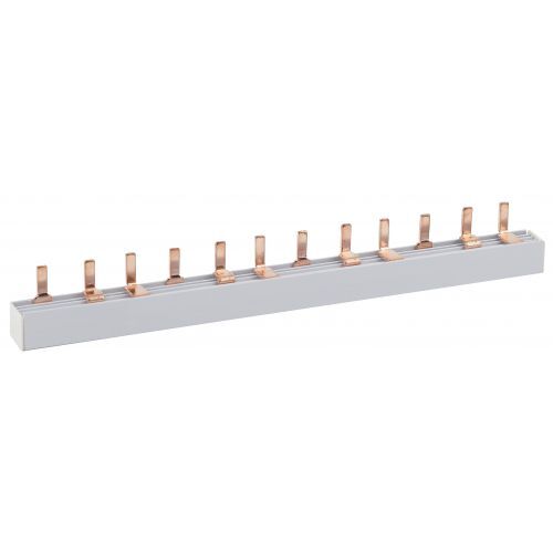 Соединительная шина для автоматических выключателей с шириной модуля 18 мм, применяется для создания безопасного и долговечного соединения в различных электроустановках