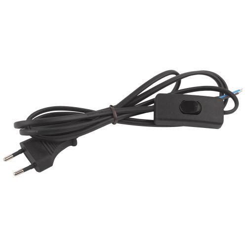 Шнур для бра UX-ШВВП-S-1,8m-B без заземления, с выключателем, провод ШВВП с сечением 2х0,5, длина 1,8 м, цвет - черный. Провод шнура питания состоит из скрученных жил с надежной ПВХ оболочкой. На конце шнура имеется штепсельная вилка. Изделие предназначено для комплектации или ремонта электрических бытовых приборов.