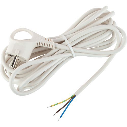 Шнур питания с вилкой UX-3x0,75-5m-B с заземлением, провод ПВС с сечением 3х0,75, длина 5 м, цвет - белый. Провод шнура питания состоит из скрученных жил с надежной ПВХ оболочкой. На конце шнура имеется штепсельная вилка. Изделие предназначено для комплектации или ремонта электрических бытовых приборов.