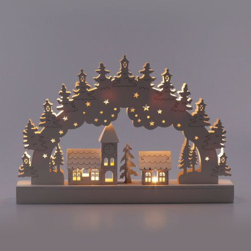 Праздничная светодиодная фигура ЭРА EGNDS-02 "Зима" (арт. Б0051929) размером 30 х 20 см с приятным теплым светом создаст в вашем доме неповторимую новогоднюю атмосферу. Этот деревянный декоративный светильник украсит любую комнату, включая спальню: приглушенный свет позволяет использовать его в качестве ночника. Светильник работает от 2 батареек AA и имеет класс защиты IP20 (рекомендуется использовать внутри помещений). Настольный зимний светильник с домиками и елочками - это отличный подарок на Новый год и Рождество для любимых. Такой новогодний декор для дома всегда дарит ощущение праздника!