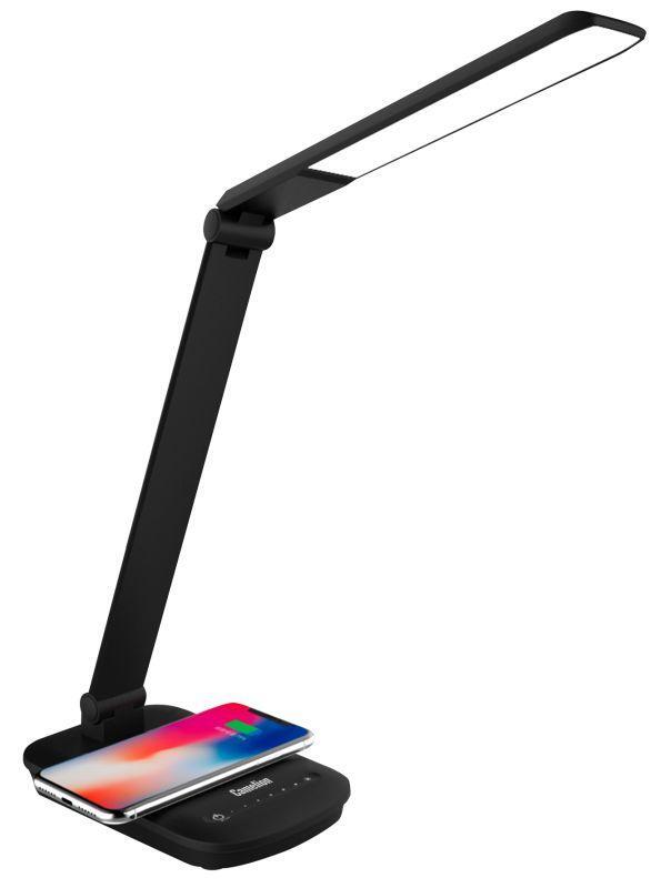 Светильник Camelion KD-825 идеален для рабочего стола. Не занимает много места, даёт достаточно света для работы и учёбы, позволят поддерживать заряд мобильного телефона. Лаконичный дизайн светильника легко впишется в любой интерьер. Светильник изготовлен из прочного ABS-пластика. При транспортировке и хранении может быть компактно сложен. Тип установки светильника : на основание. Источник света – встроенные светодиоды мощностью 6 Вт, нейтральной температурой света (4500К) и максимальным световым потоком 380 Лм. На основание расположено сенсорное управление светильником: «вкл/выкл», плавное изменение яркости. В основание светильника встроена мощная (10Вт) беспроводная зарядка для мобильных телефонов. Световой индикатор работы зарядки голубого цвета показывает идёт ли заряд аккумулятора мобильного телефона. Преимущества: Современный дизайн, Комфорт и безопасность, Мощное и безопасное беспроводное зарядное устройство, Индикатор работы зарядного устройства, Сенсорное управление, Пять уровней яркости. Стиль офисный.