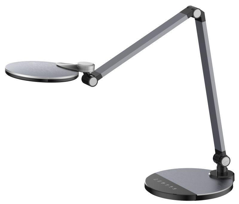 Светодиодный настольный светильник Camelion KD-865 – это многофункциональный светильник качества премиум, имеет универсальное применение, может быть использован для местного освещения рабочих мест в офисах, в домашних интерьерах , в комнатах детей и подростков. Двухзвенная (400 мм и 300 мм) мощная стойка изготовлена из алюминия. Основание ( с металлическим утяжелителем внутри ) и плафон изготовлены из пластика , имеют окрашивание и финишное покрытие «под металл». Стойка светильника имеет большой диапазон регулирования в одной плоскости. Круглый плафон – имеет большой диапазон регулирования в 2-х плоскостях ( более 180 градусов). На передней панели основания размещены шесть сенсорных копок - ON/OFF ( включение /выключение, она имеет подсветку голубого цвета), три кнопки, регулирующие цветовую температуру и имеющие зеленую подсветку ,RELAX, WORK, READ(3000К-теплый, 6000К-холодный , 4000К-нейтральный свет),зеленый светодиод подсвечивает ту кнопку, чья цветовая температура установлена, и кнопки «+» и «-», регулирующие яркость света. Мощность светильника 10 Вт, максимальный световой поток 600 лм. Цвет корпуса светильника – черный металлик Длина провода питания – 1,45 м Высота плафона над уровнем стола – 650 мм. Все элементы светильника превосходно упакованы и уложены в подарочную картонную коробку с пластиковой ручкой. Поломка элементов светильника и нанесение царапин исключены во время хранения и транспортировки. Стильный дизайн, большая яркость, надежность ,многофункциональность, продолжительный срок эксплуатации Гарантийный срок – 24 месяца