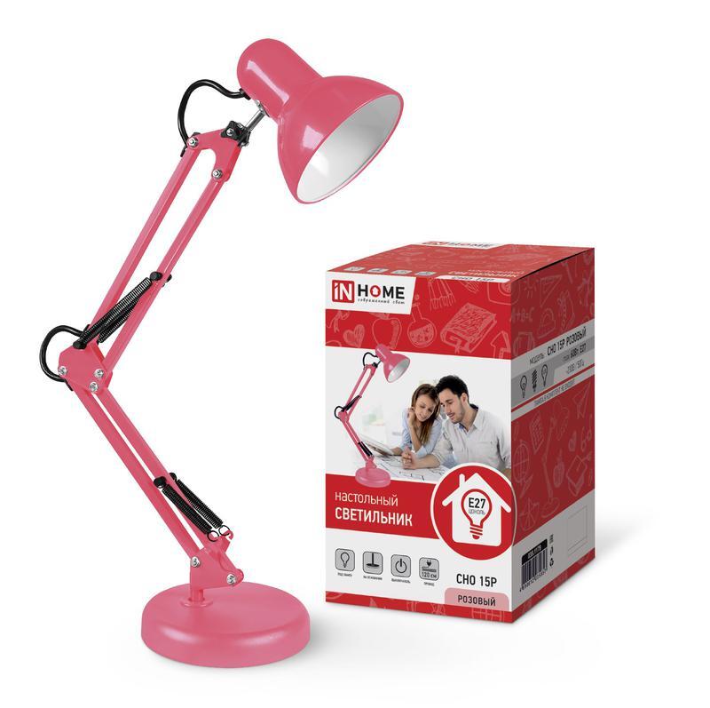 Светильник настольный СНО 15Р 60Вт E27 230В под лампу на основании роз. (кор.) IN HOME 4690612035857