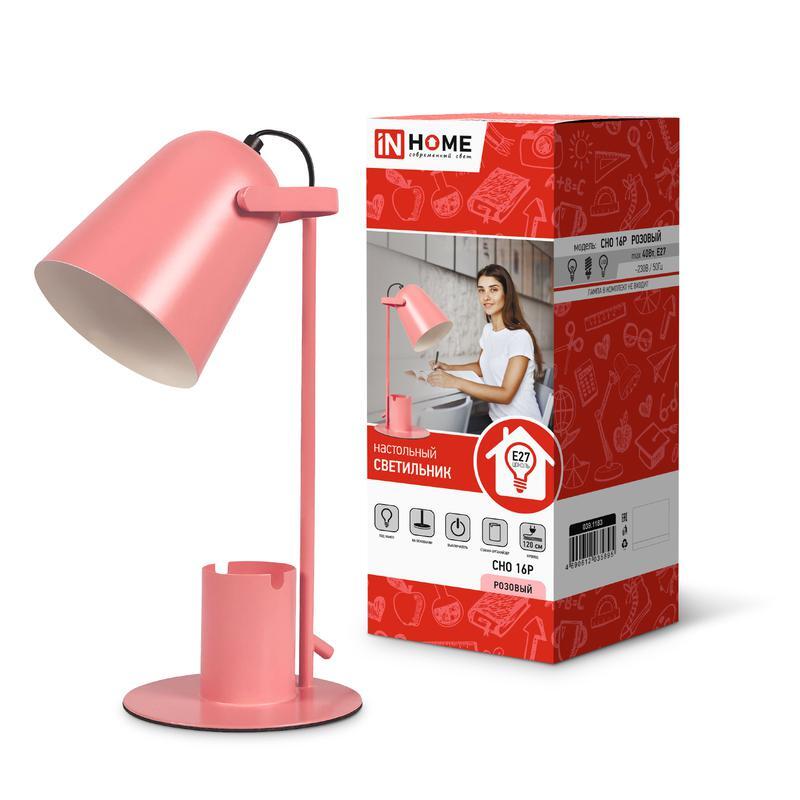 Светильник настольный СНО 16Р 40Вт E27 230В под лампу на основании с органайзером роз. (кор.) IN HOME 4690612035895