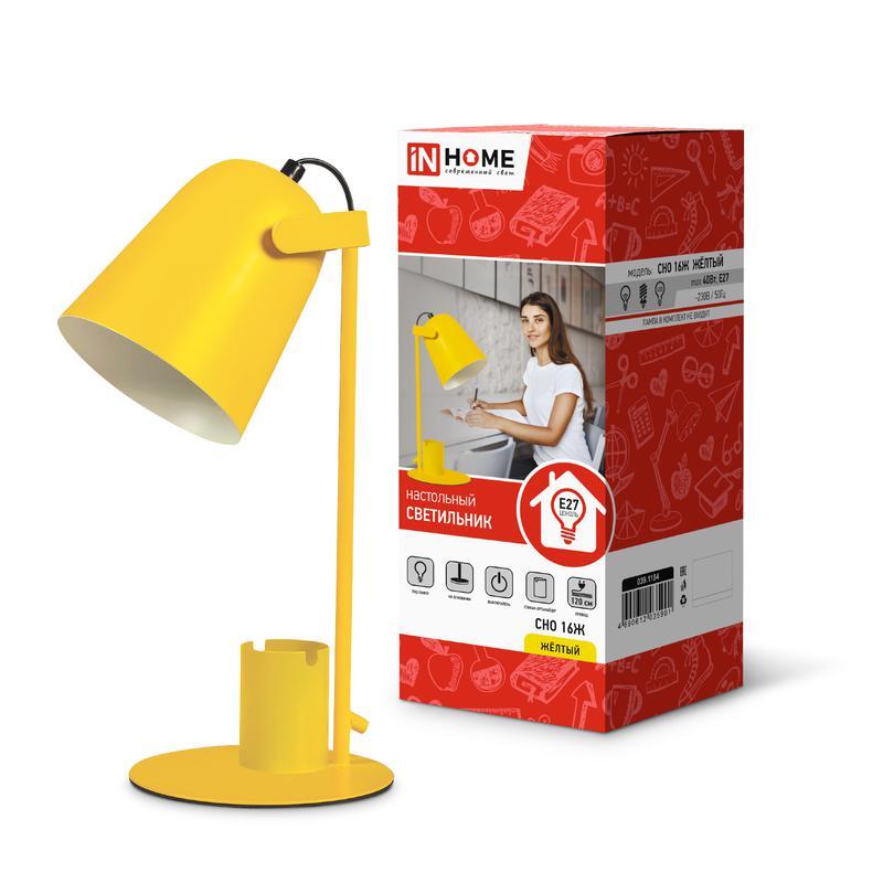 Светильник настольный СНО 16Ж 40Вт E27 230В под лампу на основании с органайзером желт. (кор.) IN HOME 4690612035901
