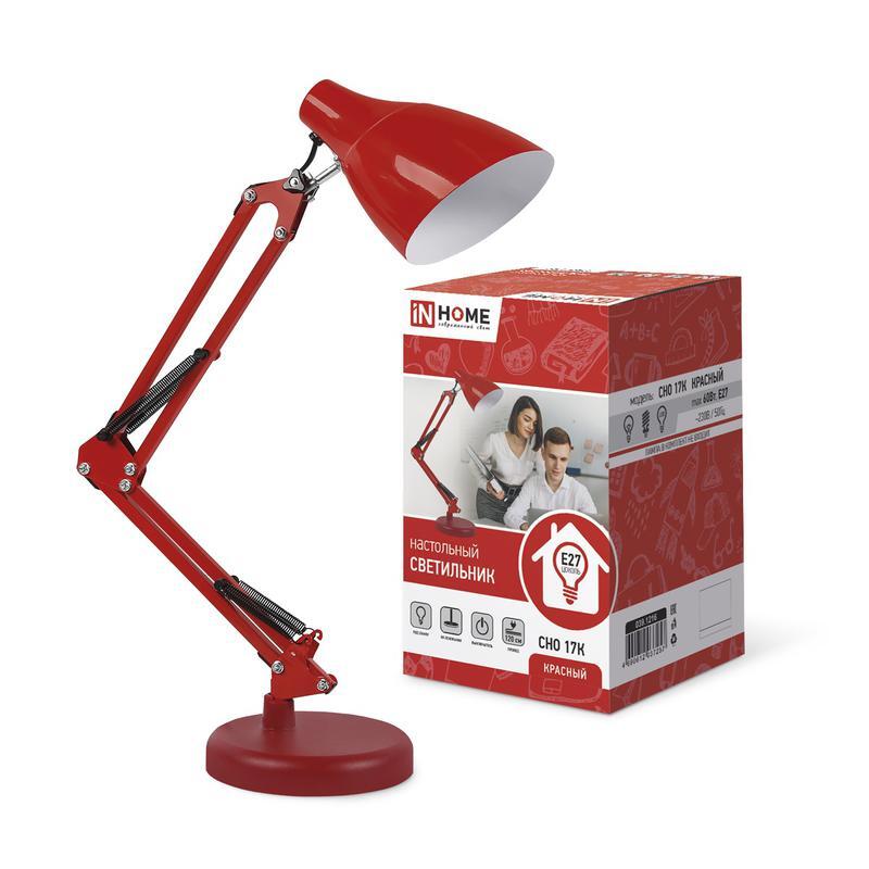 Светильник настольный СНО 17К 60Вт E27 230В под лампу на основании красн. (кор.) IN HOME 4690612037257