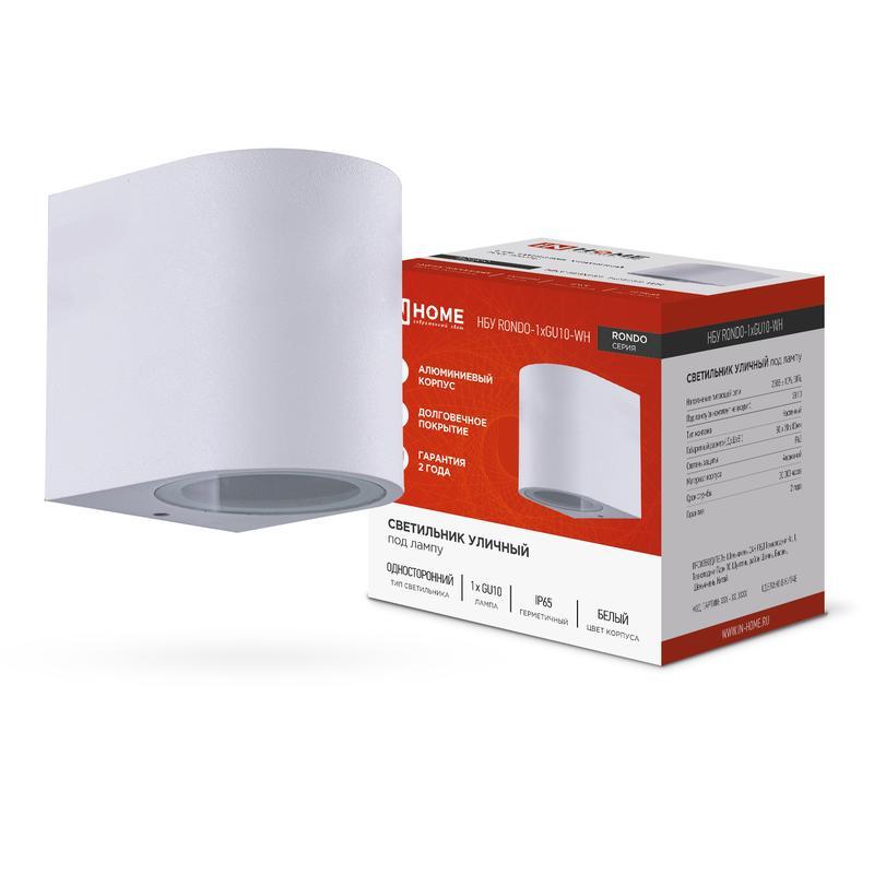 Светильник НБУ RONDO-1хGU10-WH IP65 уличный настен. односторон. под лампу 1хGU10 алюм. бел. IN HOME 4690612044699