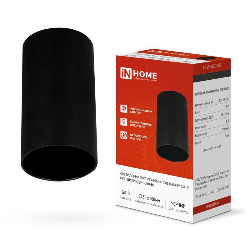 Светильник НПБ ЦИЛИНДР-GU10-BL 55х100мм потолочн. под лампу GU10 черн. IN HOME 4690612046457