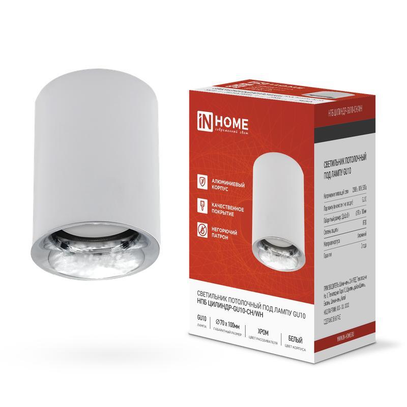 Светильник НПБ ЦИЛИНДР-GU10-CH/WH 70х100мм потолочн. под лампу GU10 бел. IN HOME 4690612045535