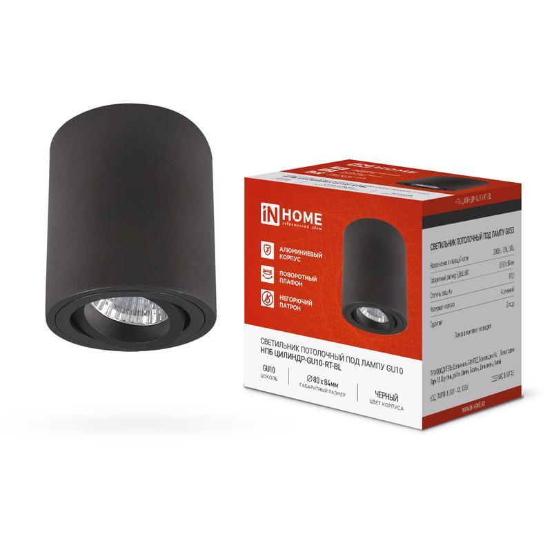 Светильник НПБ ЦИЛИНДР-GU10-RT-BL 80х84мм потолочн. поворотн. под лампу GU10 черн. IN HOME 4690612046617