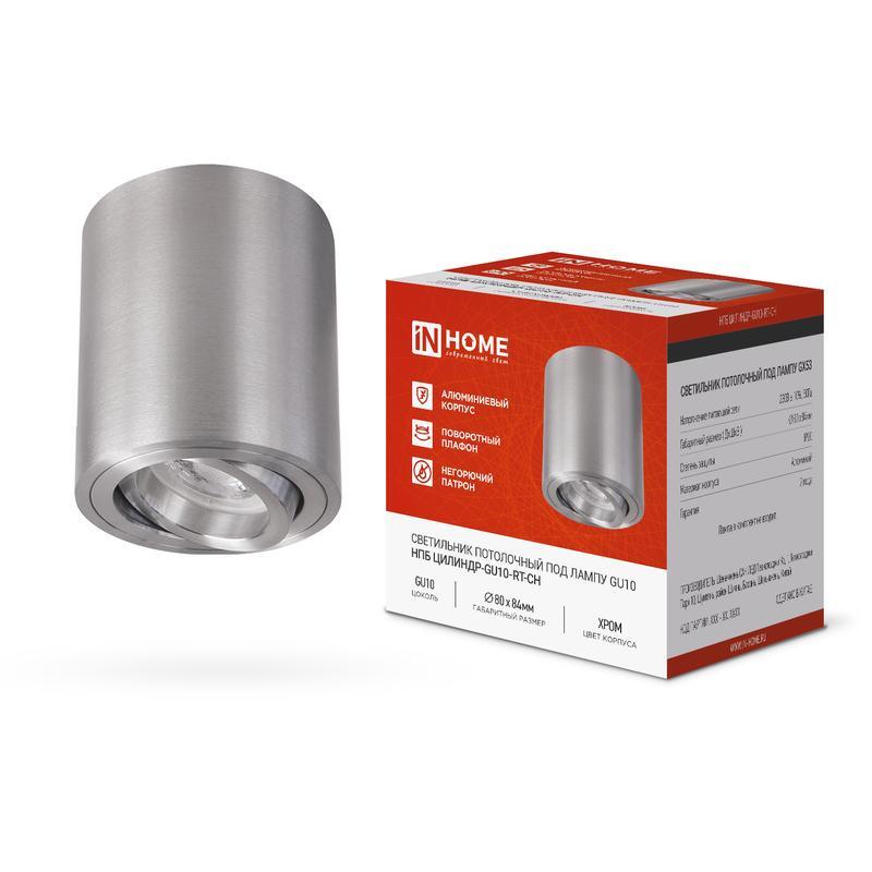 Светильник НПБ ЦИЛИНДР-GU10-RT-CH 80х84мм потолочн. поворотн. под лампу GU10 хром IN HOME 4690612046624