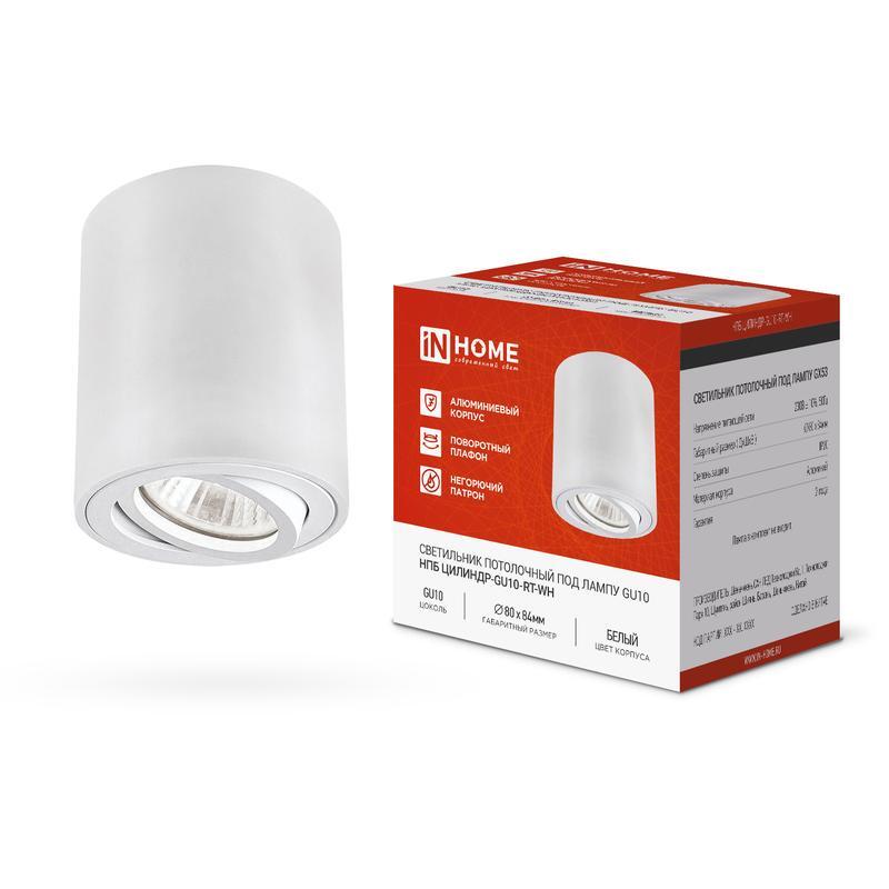 Светильник НПБ ЦИЛИНДР-GU10-RT-WH 80х84мм потолочн. поворотн. под лампу GU10 бел. IN HOME 4690612046600