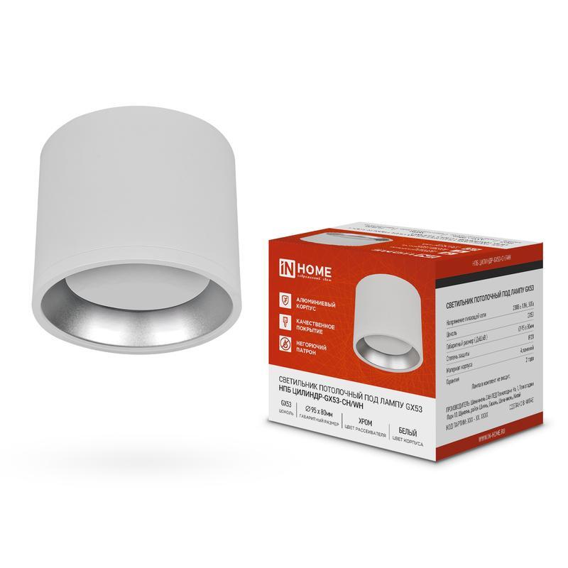 Светильник НПБ ЦИЛИНДР GX53-CH/WH 95х80мм потолочн. под лампу GX53 бел./хром IN HOME 4690612046563
