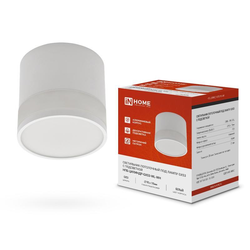 Светильник НПБ ЦИЛИНДР-GX53-WL-WH 90х115мм потолочн. под лампу GX53 бел. IN HOME 4690612045733