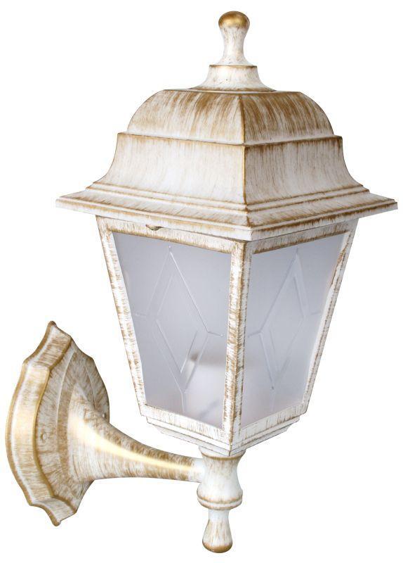 Светильник стационарный настенный предназначен для функционально-декоративного освещения скверов, парков, бульваров и рассчитан для работы в сети переменного тока с номинальным напряжением 220в и частотой 50Гц в условиях умеренного климата при температуре воздуха плюс 40°C... минус 45°C при среднегодовой относительной влажности воздуха не более 80% при плюс 15 °C. Светильник имеет усиленную изоляцию и не имеет элементов для заземления, защищен от пыли и от брызг. Светильник пригоден для установки непосредственно на поверхности из нормально воспламеняемых материалов. Camelion PP4201/02 C66 НБУ 04-60-001 У1 "Леда" белый+бронза, размер 210х340х150мм, источник света - ЛОН, тип лампы 60/А/Е27, патрон - E27, питание ~230В, 50Гц, макс. мощность60Вт, материал корпуса - полипропилен / полистирол, IP44