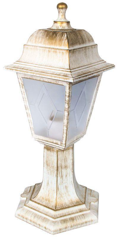 Светильник стационарный напольный предназначен для функционально-декоративного освещения скверов, парков, бульваров и рассчитан для работы в сети переменного тока с номинальным напряжением 220в и частотой 50Гц в условиях умеренного климата при температуре воздуха плюс 40°C... минус 45°C при среднегодовой относительной влажности воздуха не более 80% при плюс 15 °C. Светильник имеет усиленную изоляцию и не имеет элементов для заземления, защищен от пыли и от брызг Светильник пригоден для установки непосредственно на поверхности из нормально воспламеняемых материалов. Camelion PP4204 C66 НТУ 04-60-001 У1 "Оскар" белый+бронза, размер 190х410х170мм, источник света - ЛОН, тип лампы 60/А/Е27, патрон - E27, питание ~230В, 50Гц, макс. мощность60Вт, материал корпуса - полипропилен / полистирол, IP44