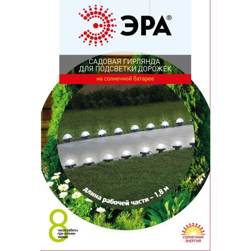 Садовая гирлянда для подсветки дорожек на солнечной батарее 3,8 м (длина рабочей части 1,8 м) 10 LED ЭРА ERASF23-18