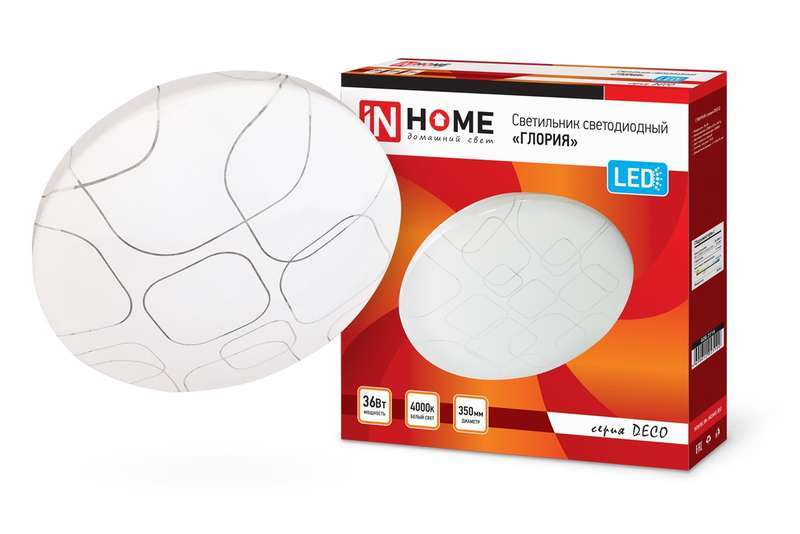 Светильник светодиодный DECO ГЛОРИЯ 36Вт 4000К 3240лм 230В 380х55мм IN HOME 4690612025100