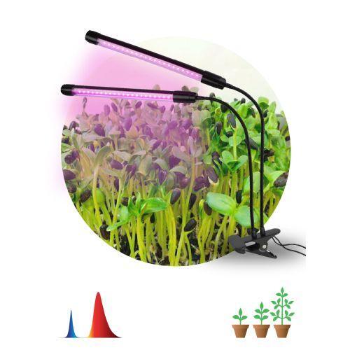 ЭРА CROCUS — удобный домашний фитосветильник на прищепке, в чёрном корпусе, с двумя LED-модулями. Можно быстро разместить в любом месте дома, просто зафиксировав прищепку на столешнице или полке. Мощность — 12 Вт. Фотонный поток — 22 мкмоль/с. Шнур — 130 см, двойной. Каждый светодиодный модуль включается и выключается отдельно. Рассеиватель из прозрачного поликарбоната позволяет растениям получать максимальное количество света. Красно-синий спектр — универсальная досветка как для комнатных растений, так и для рассады. Длина каждого LED-модуля — 33 см. Количество светодиодов: 2 х 21. Всего — 42 светодиода. Это намного больше, чем обычно применяют в бытовых фитосветильниках. Прищепка надёжная, металлическая, тугая. Подходит даже для толстых современных подоконников (до 5,5 см). Есть отверстие диаметром 8 мм для подвеса фитосветильника на стену. Две гибкие стойки — стальные, по 38 см каждая. Досвечивать растения можно даже в высоких горшках. Есть возможность досвечивать одним светильником как высокие, так и низкие растения. Расположив плафоны в одну линию можно досвечивать рассаду сразу на всём подоконнике.