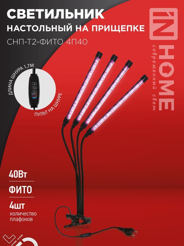 Светильник светодиодный настольный СНП-Т2-ФИТО 4П40 40Вт 4 плафона на прищепке пульт на шнуре черн. IN HOME 4690612053554