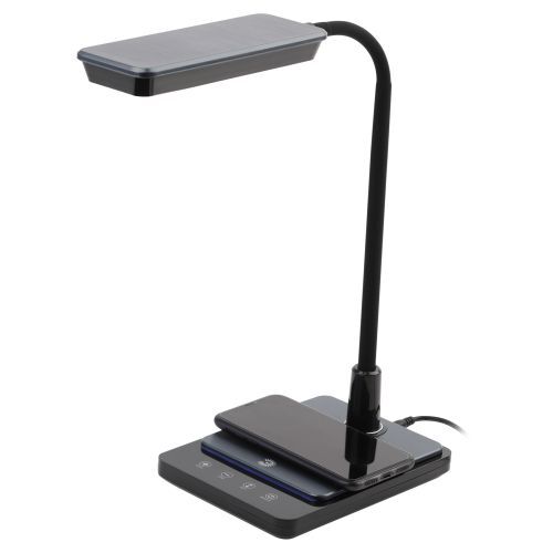 Настольный светильник ЭРА NLED-499-10W-BK со светодиодами (LED) в качестве источников света. Оснащен сенсорным управлением с возможностью выбора цветовой температуры (теплый, нейтральный или холодный свет). Плавный диммер для регулировки яркости. Светильник сохраняет выбранные настройки при включении-выключении. Направление света регулируется наклоном и поворотом плафона в любом направлении. Светильник имеет встроенный модуль Qi для беспроводной зарядки мобильных устройств. Просто положите телефон, поддерживающий функцию Qi, на основание светильника в отмеченной зоне - светильник подзарядит его удобно и быстро!