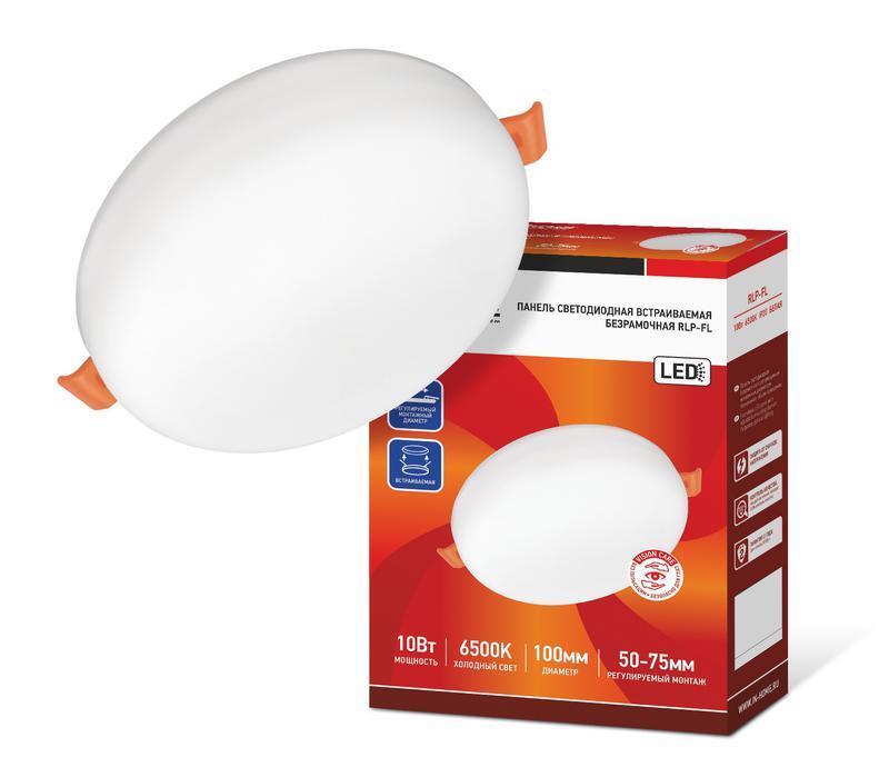 Светильник светодиодный RLP-FL 10Вт 6500К IP20 900лм 230В 100мм с рег. монтаж. 50-75мм встраив. безрамочн. панель бел. IN HOME 4690612036724