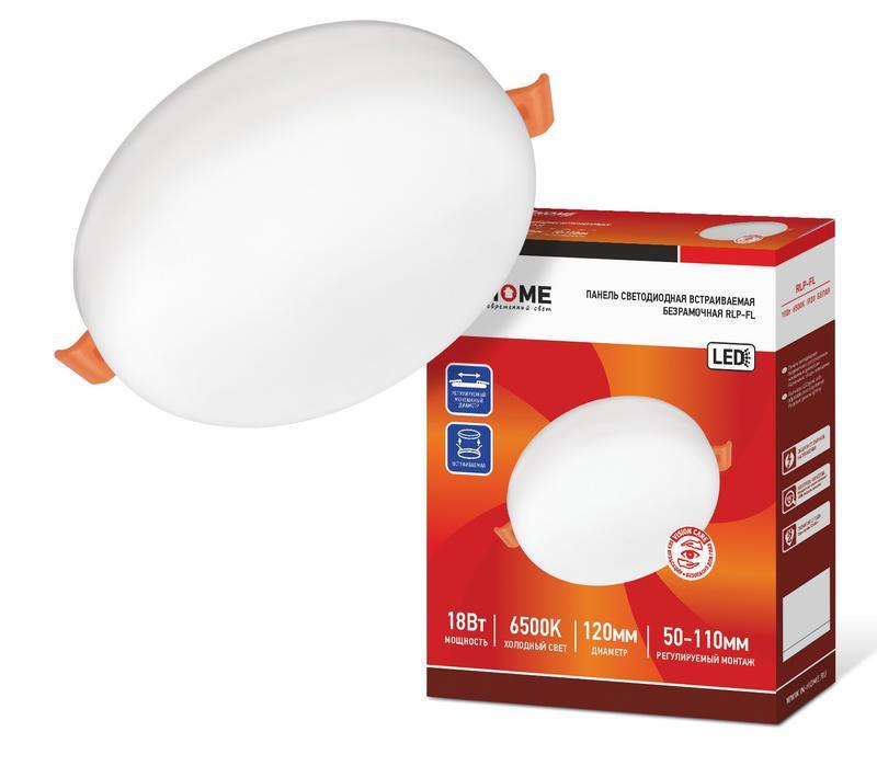 Светильник светодиодный RLP-FL 18Вт 6500К IP20 1620лм 230В 120мм с рег. монтаж. 45-100мм встраив. безрамочн. панель бел. IN HOME 4690612036731