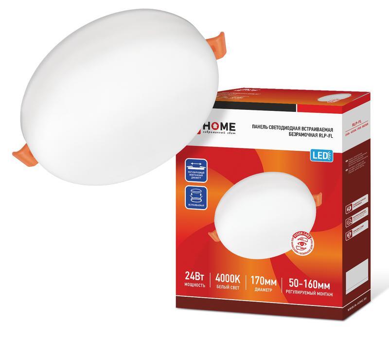 Светильник светодиодный RLP-FL 24Вт 4000К IP20 2160лм 230В 170мм с рег. монтаж. 45-140мм встраив. безрамочн. панель бел. IN HOME 4690612036700
