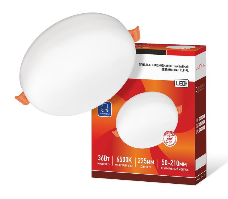 Светильник светодиодный RLP-FL 36Вт 6500К IP20 3240лм 230В 223мм с рег. монтаж. 45-190мм встраив. безрамочн. панель бел. IN HOME 4690612036755