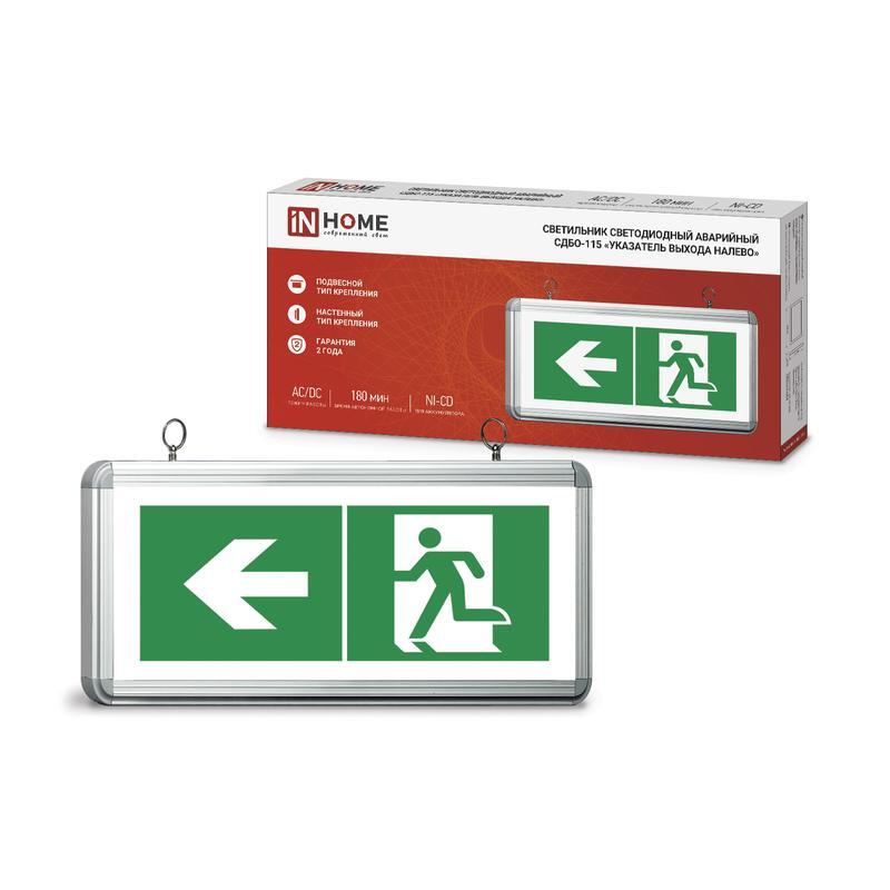 Светильник светодиодный СДБО-115 "УКАЗАТЕЛЬ ВЫХОДА НАЛЕВО" 3 часа NI-CD AC/DC аварийный односторон. IN HOME 4690612040257