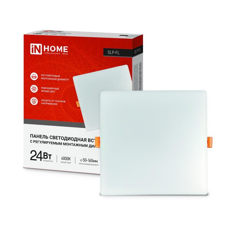 Светильник светодиодный SLP-FL 24Вт 4000К IP20 2160лм 230В 172мм с рег. монтаж. 45-140мм встраив. безрамочн. панель бел. IN HOME 4690612041810