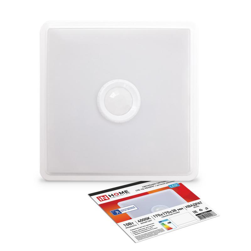 Светильник светодиодный СПБ-2Д-КВАДРАТ 10Вт 4000К 800лм 230В 170мм с датчиком бел. IN HOME 4690612022086