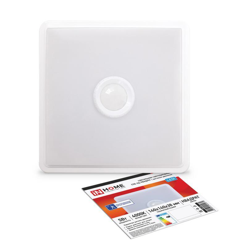 Светильник светодиодный СПБ-2Д-КВАДРАТ 5Вт 4000К 400лм 230В 140мм с датчиком бел. IN HOME 4690612022079