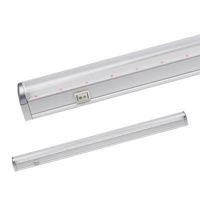 СПБ-Т5-ФИТО от ТМ INhome – это линейный светодиодный светильник накладного типа с выключателем на корпусе, коннектором и креплением в комплекте. Модель используется для стимуляции роста растений (выращивания рассады, микрозелени, а также дополнительного освещения тропических цветов и других солнцелюбивых растений). Фитосветильник может применяться как для дополнительной подсветки, так и для полной замены естественного солнечного света. В отличие от люминесцентных аналогов, светодиодные светильники являются полностью экологически безопасными. Кроме того, использование светодиодов снижает испарение, увеличивая тем самым период между поливами. Площадь эффективного освещения у светильника мощностью 10Вт составляет 1 кв.м. Номинальный срок службы – не менее 30000 часов. Зачем растениям особое освещение? Спектр света фитосветильников способствует более активному фотосинтезу растений, в результате чего ускоряется развитие мощной корневой системы, стимулируется формирование крепкого стебля и листа. Помимо этого, специальное фитоосвещение повышает «иммунитет» цветочных и овощных культур, увеличивая сопротивляемость к болезням. Дело в том, что растения используют не весь видимый спектр света, а только его части – красный, синий и фиолетовый (пурпурный). Излучаемый световой поток фитосветильников как раз и состоит из этих цветов. Поэтому КПД таких светильников выше, чем у других источников света. Соотношение излучаемых волн СПБ-Т5-ФИТО: красный (способствует выработке хлорофилла А) – 660нм, синий (хлорофилл Б) – 430нм, ИК (хлорофилл Ф) – 730нм, УФ (выработка смол в целях защиты) – 400нм. Светильник имеет розовое свечение.